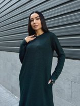 Приталена сукня з в'яленої вовни з круглою горловиною і вишивкою на довгих рукавах. Застібається на змійку ззаду і має пояс в комплекті. Сукня створена для випадків, коли хочеться бути яскравою, підкреслити фігуру, та при цьому бути в теплому одязі. Тканина має дуже низький степінь розтяжності.
