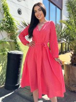 Сукня з коміром-хомутом і розрізами з боків – чудовий вибір для стильних і комфортних образів. Вільний крій забезпечує свободу рухів і комфорт протягом усього дня. Розрізи з боків додають сукні елегантності та шарму, підкреслюючи ніжність і жіночність фігури. Ця сукня підходить як для повсякденного носіння, так і для особливих подій або вечірок, роблячи вас завжди стильними і привабливими.