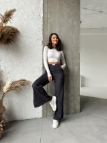 Модні трикотажні штани з тринитки з начосом — ідеальна база для створення як спортивних, так і повсякденних образів. Широкі штани з тринитки на флісі, який не кошлатиться, вирізняються еластичною резинкою на талії та зручними кишенями. Відстрочка по всій довжині додає стильних акцентів. Базова модель з високою посадкою підкреслює талію та створює стрункий силует. Прямий вільний крій гарантує комфорт протягом усього дня, а високоякісна бавовна з м'яким флісом всередині робить штани приємними на дотик і стійкими до зносу.