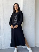 Наші вироби в основному оверсайз стилю, дуже вільні, тому якщо у дівчини груди 112 см, краще взяти 52/54, досить вільно по грудях, і було легко влізти. Якщо ж взяти 56/58, то розмір буде дуже великим і в ньому можна буде потонути.