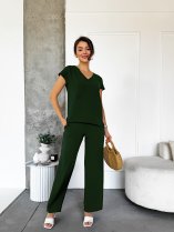 Легка літня сукня з м’якої жатої тканини — ідеальний вибір для спекотних днів. Модель вільного крою з V-подібним вирізом, короткими рукавами та широким воланом по низу створює романтичний, жіночний образ. Приємна до тіла тканина добре пропускає повітря, забезпечуючи комфорт протягом усього дня. Підходить як для прогулянок, так і для літнього відпочинку.