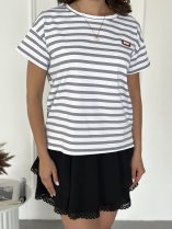Легка та стильна блуза в білому кольорі ніжний принтом, короткими рукавами і невеликими розрізами з боків. Вона є універсальною та відмінно підходить на різні випадки життя. З цією блузою ви зможете створювати різноманітні та елегантні образи, завдяки чому вона стане незамінною частиною вашого гардеробу.