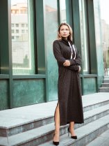 Довга трикотажна сукня з люрексовим блиском — елегантна модель, що поєднує комфорт і стиль. М’який трикотаж із делікатним сяйвом люрексу красиво лягає по фігурі, не обмежуючи рухів. Прямий силует з високими боковими розрізами візуально подовжує ноги та додає легкості образу. Довгі рукави та приємна на дотик тканина забезпечують комфорт у прохолодну пору. Ідеальний варіант як для повсякденних луків, так і для святкових виходів. Чудово поєднується з підборами, черевиками чи чоботами.